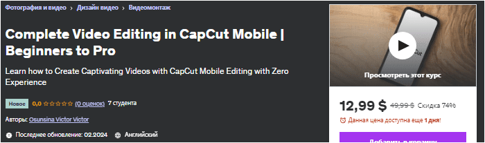 Научитесь улучшать свои видео с помощью захватывающих эффектов, плавных переходов и штрихов профессионального уровня, которые очаруют вашу аудиторию. Благодаря практическим руководствам, практическим упражнениям и полезным советам вы быстро поднимете свои навыки редактирования до профессионального уровня. Независимо от того, являетесь ли вы новичком, стремящимся изучить мир создания видео, или опытным монтажером, стремящимся расширить свой репертуар, этот курс предлагает идеальное сочетание теории и практики, позволяющее раскрыть ваш творческий потенциал и создавать потрясающие видеоролики, выделяющиеся в современном цифровом мире. Он также представляет собой идеальное сочетание практических рекомендаций и творческого вдохновения, позволяющее поднять ваши навыки на новую высоту. Зарегистрируйтесь сейчас и отправляйтесь на путь становления мастером редактирования CapCut Mobile.