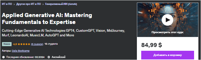[Udemy] [ENG] Прикладной генеративный искусственный интеллект: освоение основ экспертизы (2024)