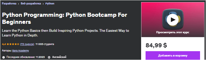 Этот курс предлагает краткое введение в программирование на Python, обеспечивая плавное обучение для начинающих.