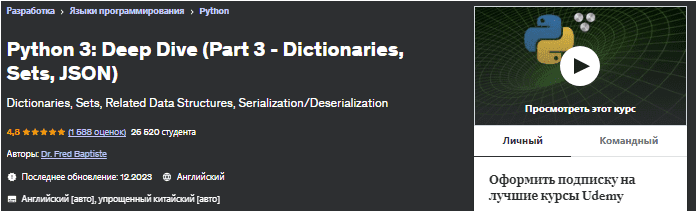 Обратите внимание, что это относительно продвинутый курс Python, и требуются глубокие знания некоторых тем Python.