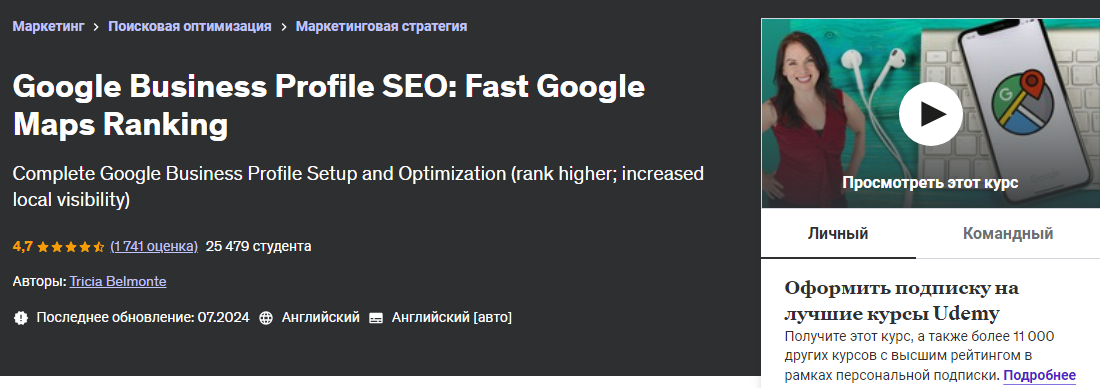 Название: SEO для бизнес-профиля Google - быстрый рейтинг в Google Maps (2024)