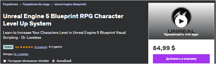 [Udemy] [Eng] Система повышения уровня персонажа в Unreal Engine 5 Blueprint RPG (2024)