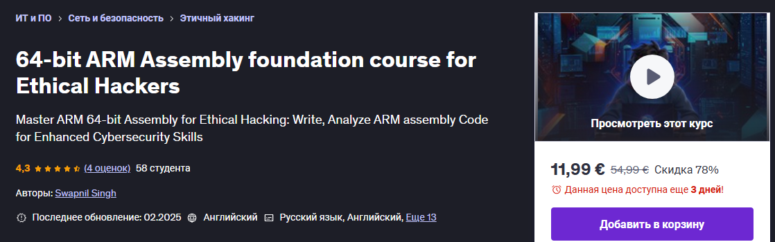 Запишитесь на курс сегодня и сделайте первый шаг к тому, чтобы стать экспертом в области ARM 64-битной сборки и этического взлома.