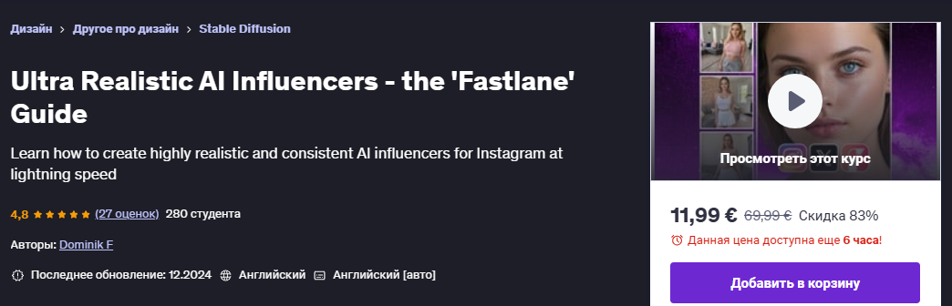 - Курс рассчитан на тех, кто хочет быстро научиться создавать собственных AI-инфлюенсеров для Instagram