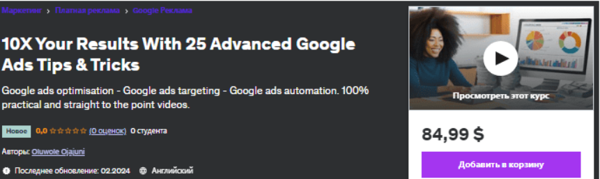 [Udemy] [ENG] Увеличьте свои результаты в 10 раз с помощью 25 продвинутых советов и подсказок по Google Рекламе (2024)