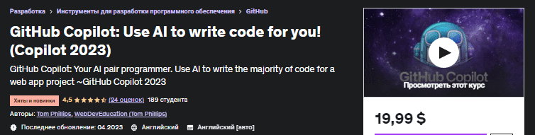 [Udemy] GitHub Copilot: используйте ИИ для написания кода для вас! (второй пилот 2023 г.) (2023)