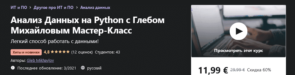 [Udemy] Gleb Mikhaylov - Анализ Данных на Python с Глебом Михайловым Мастер-Класс (2021)