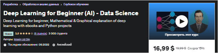 [Udemy] Глубокое обучение для начинающих (ИИ) — наука о данных (2022)