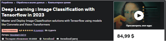 [Udemy] Глубокое обучение: классификация изображений с Tensorflow в 2023 году (2023)