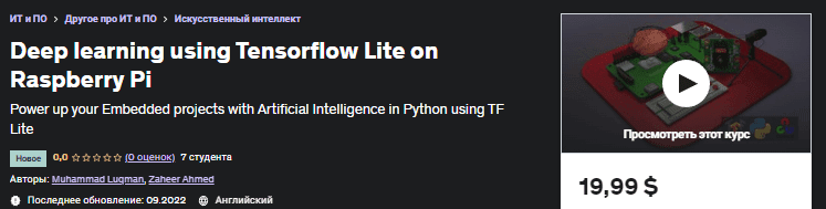 [Udemy] Глубокое обучение с использованием Tensorflow Lite на Raspberry Pi (2022)