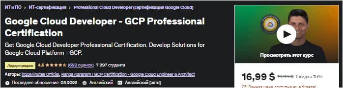 [Udemy] Google Cloud Developer — профессиональная сертификация GCP (2022)