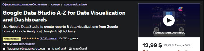 [Udemy] Google Data Studio для визуализации данных и информационных панелей (2022)