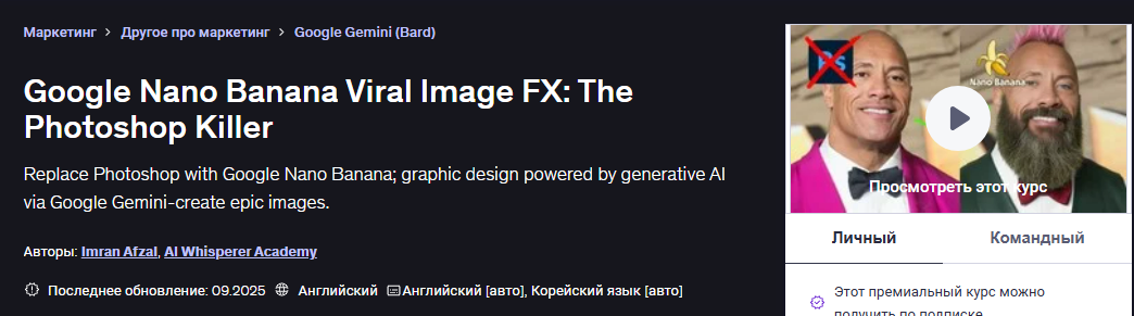 [Udemy] [Imran Afzal] [ENG] Вирусные изображения Google Nano Banana: убийца Photoshop (2025)