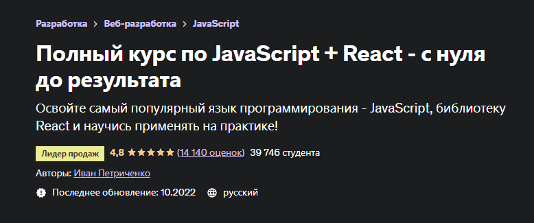 [Udemy] [Иван Петриченко] Полный курс по JavaScript + React - с нуля до результата