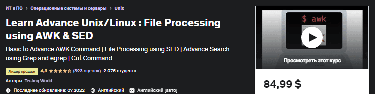 [Udemy] Изучите Advanced Unix / Linux : Обработка файлов с использованием AWK и SED (2022)