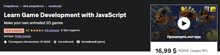 [Udemy] Изучите разработку игр с помощью JavaScript (2022)