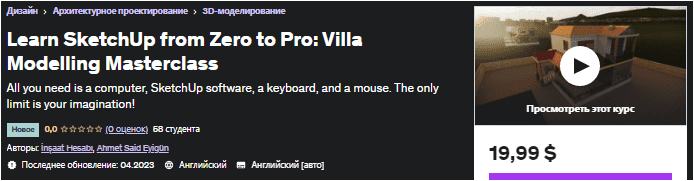 [Udemy] Изучите SketchUp с нуля до профессионала: мастер-класс по моделированию виллы (2023)