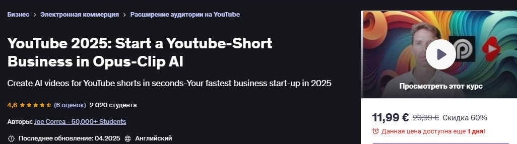 [Joe Correa] [Udemy] YouTube 2025: начните бизнес YouTube-Shorts в Opus-Clip AI (2025)