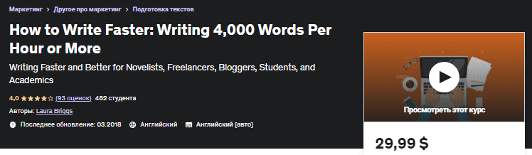 [Udemy] Как писать быстрее: Писать 4000 слов в час или больше (2022)