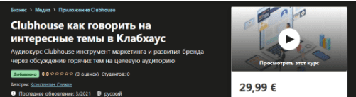 Аудиокурс Clubhouse инструмент маркетинга и развития бренда через обсуждение горячих тем на целевую аудиториюwww.udemy.com
