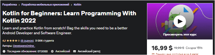 [Udemy] Kotlin для начинающих: изучайте программирование с Kotlin 2022 (2022)