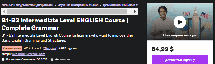 [Udemy] Курс английского языка среднего уровня B1-B2 | Полная грамматика (2022)