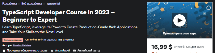 [Udemy] Курс разработчика TypeScript в 2023 году — от новичка до эксперта (2023)