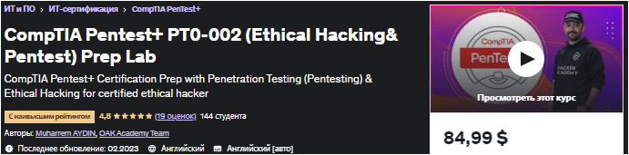 Этот курс предназначен для сертификации CompTIA Pentest+ PT0-002.