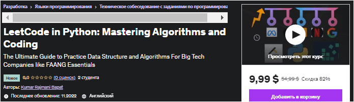 [Udemy] LeetCode в Python: освоение алгоритмов и кодирование (2022)