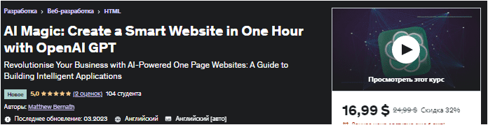 [Udemy] Магия ИИ: создайте умный веб-сайт за один час с помощью OpenAI GPT (2023)