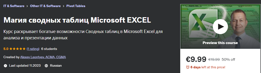 Курс раскрывает богатые возможности Сводных таблиц в Microsoft Excel для анализа и презентации данных