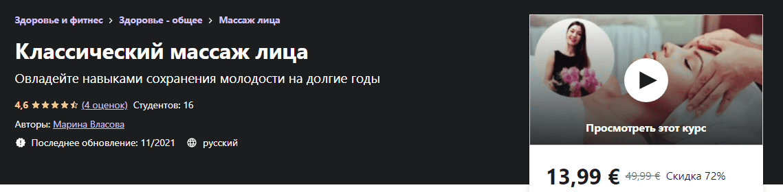 [Udemy] Марина Власова - Классический массаж лица (2021)