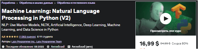 [Udemy] Машинное обучение: Обработка естественного языка в Python (V2) (2022)