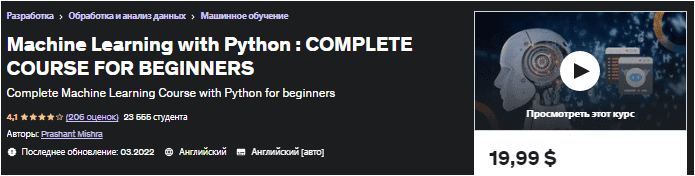 [Udemy] Машинное обучение с Python: ПОЛНЫЙ КУРС ДЛЯ НАЧИНАЮЩИХ (2022)