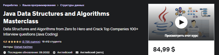 [Udemy] Мастер-класс по структурам данных и алгоритмам Java (2022)