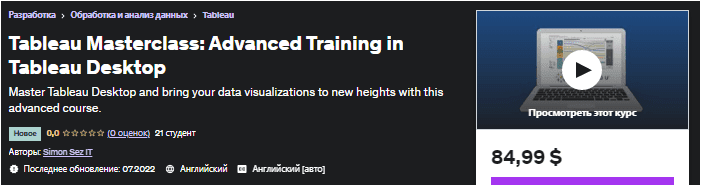[Udemy] Мастер-класс по Tableau: Продвинутое обучение работе с Tableau Desktop (2022)