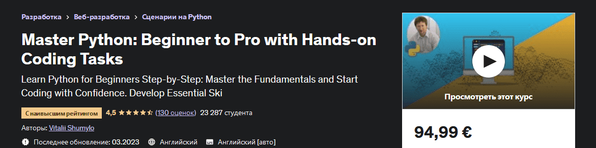 [Udemy] Master Python - от новичка до профессионала с практическими задачами по кодированию (2023)