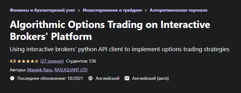 [Udemy] Mayank Rasu - Алгоритмическая торговля опционами на платформе Interactive Brokers (2021)