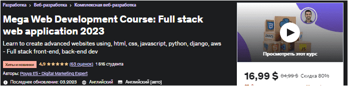 Мега-курс веб-разработки: полнофункциональное веб-приложение 2023 от Pouya Eti