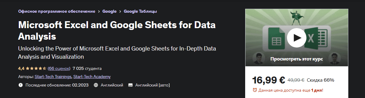 [Udemy] Microsoft Excel и Google Таблицы для анализа данных (2023)