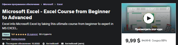 [Udemy] Microsoft Excel — курс Excel от начального до продвинутого (2022)