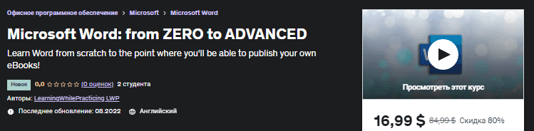 [Udemy] Microsoft Word: от НУЛЯ к РАСШИРЕННОМУ (2022)