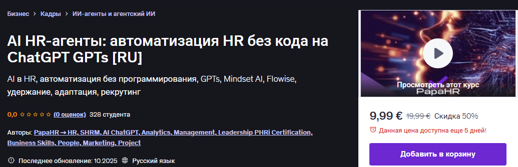 Название: AI HR-агенты: автоматизация HR без кода на ChatGPT GPTs (2025)