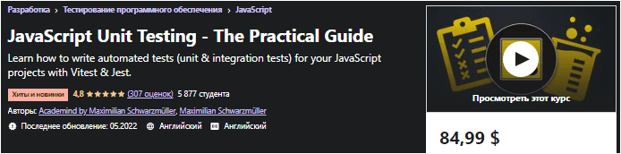 [Udemy] Модульное тестирование JavaScript - практическое руководство (2022)