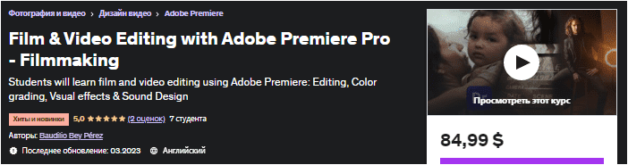 В этом курсе по редактированию фильмов и видео учащиеся научатся использовать Adobe Premiere, освоив основные основы, которые должен иметь каждый монтажер для работы над кинопроектом. Курс предназначен для того, чтобы вооружить студентов навыками использования не только Adobe Premiere, но и любого программного обеспечения для редактирования видео в будущем.