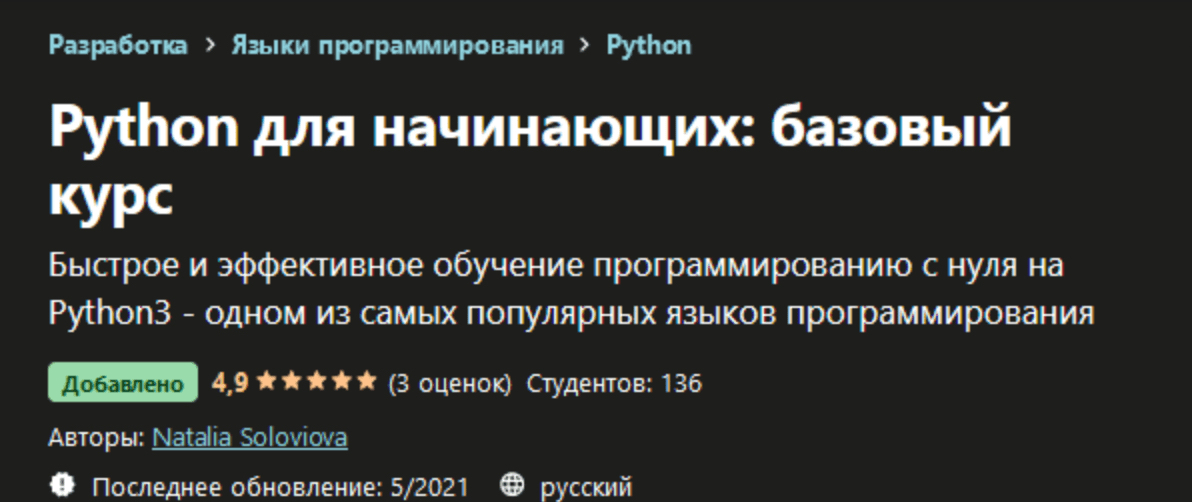[Udemy] Natalia Soloviova - Python для начинающих: базовый курс (2021)