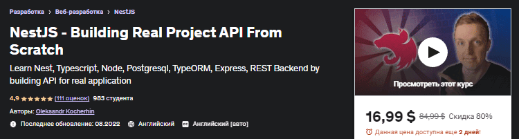 [Udemy] NestJS - Создание API Реального Проекта с Нуля (2022)