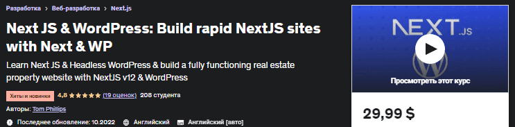 [Udemy] Next JS и WordPress: быстрое создание сайтов Next JS с помощью Next и WP (2022)