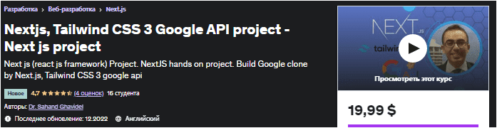 [Udemy] Nextjs, Tailwind CSS 3 Проект Google API — проект Next js (2022)