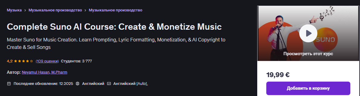 Название: Полный курс Suno AI: создание и монетизация музыки (2025)